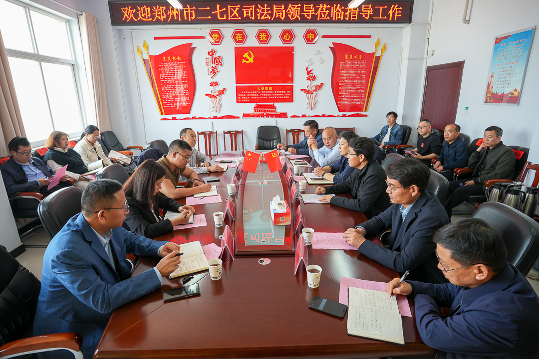 10月13日,郑州市二七区司法局党组书记、局长邹峰一行十余人,莅临我县参观考察人民调解工作,县司法局党委书记、局长吕伟杰陪同。