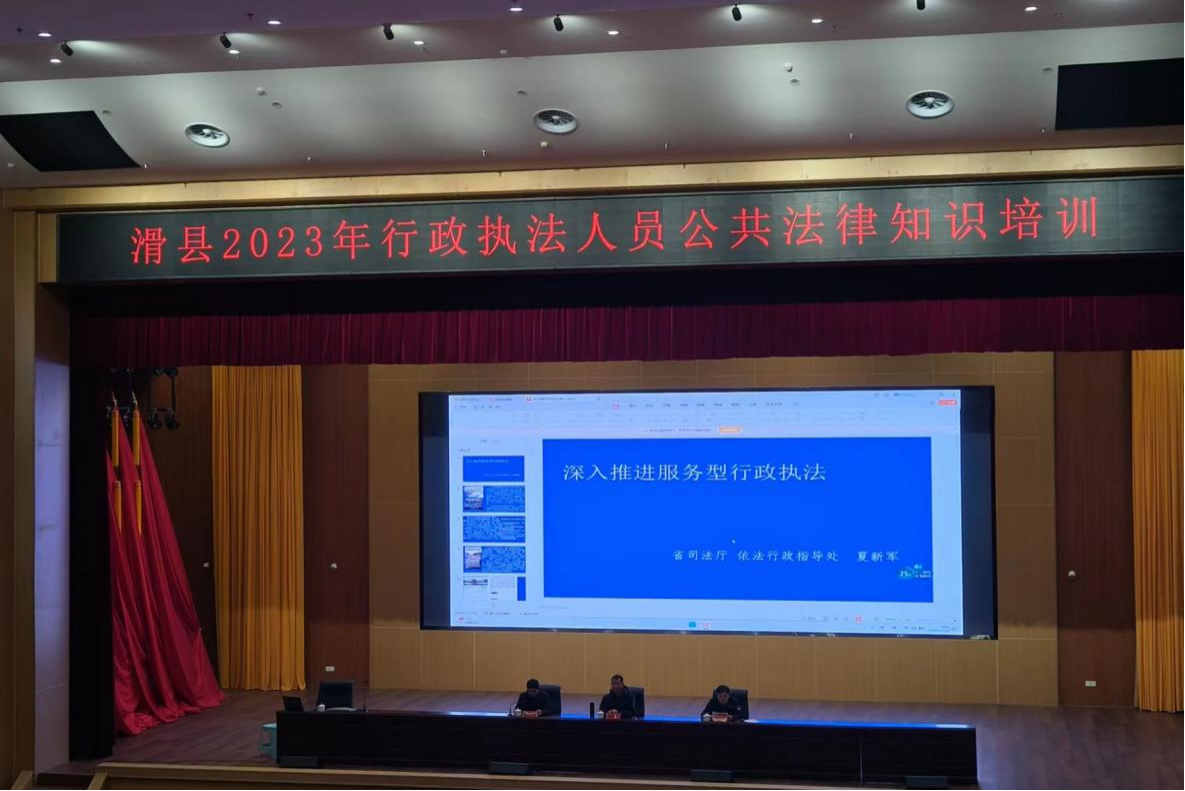 为进一步提高全县行政执法人员综合素质,促进严格公正文明执法。12月13日,由县司法局组织的2023年度行政执法人员公共法律知识培训班在县委党校开班。副县长、县公安局局长臧国民在开班仪式上致辞。省司法厅依法行政指导处副处长夏新军出席开班仪式并授课。