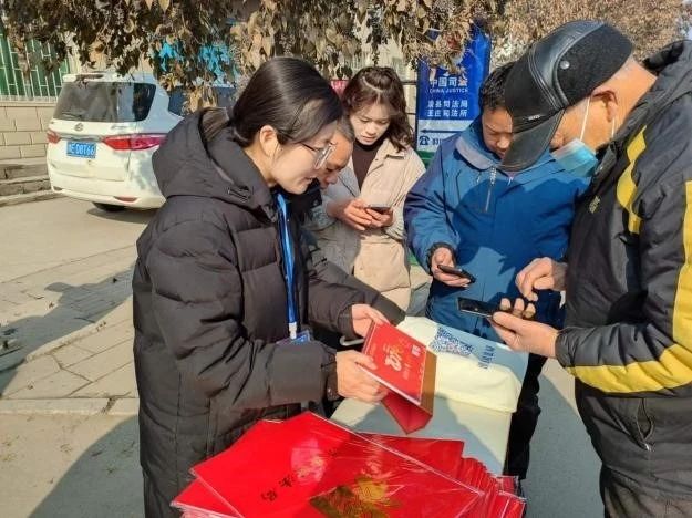 赵营司法所开展了扫码关注公众号、视频号送挂历活动,引来了群众的纷纷围观。现场有群众提出法律咨询,工作人员现场进行一一解答。