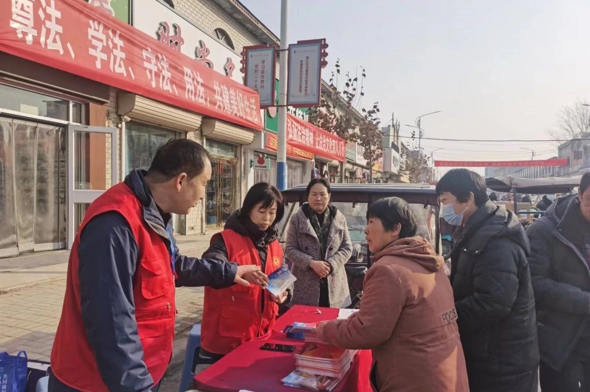 春节临近,正值外出务工人员返乡的高峰期,王庄司法所在镇政府门口设立宣传台、发放法治春联、解答法律咨询等形式,为群众提供法律帮助、法律服务,“法”味十足。