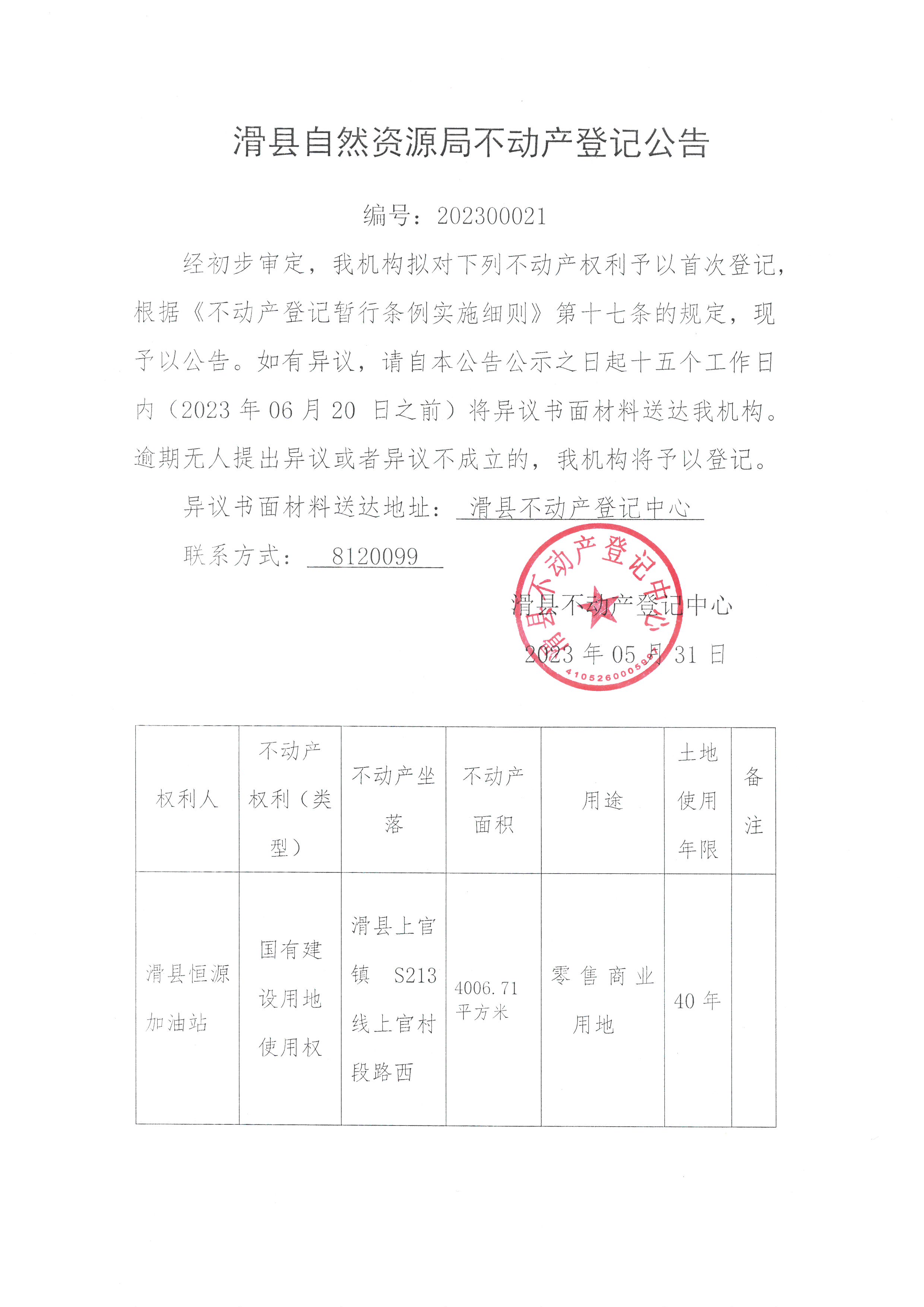 登记公告