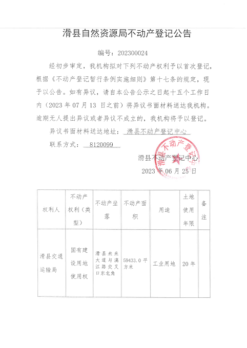 登记公告