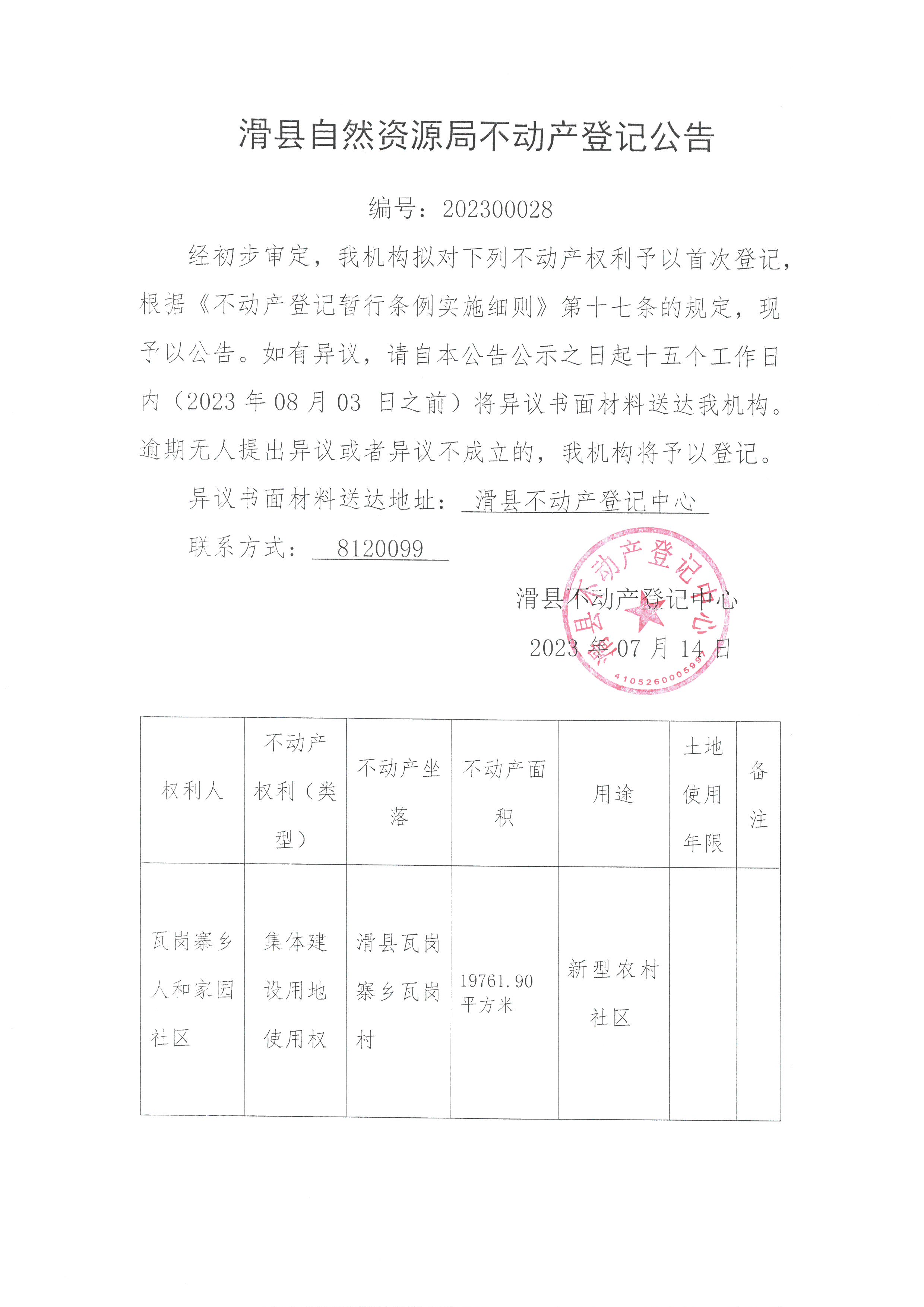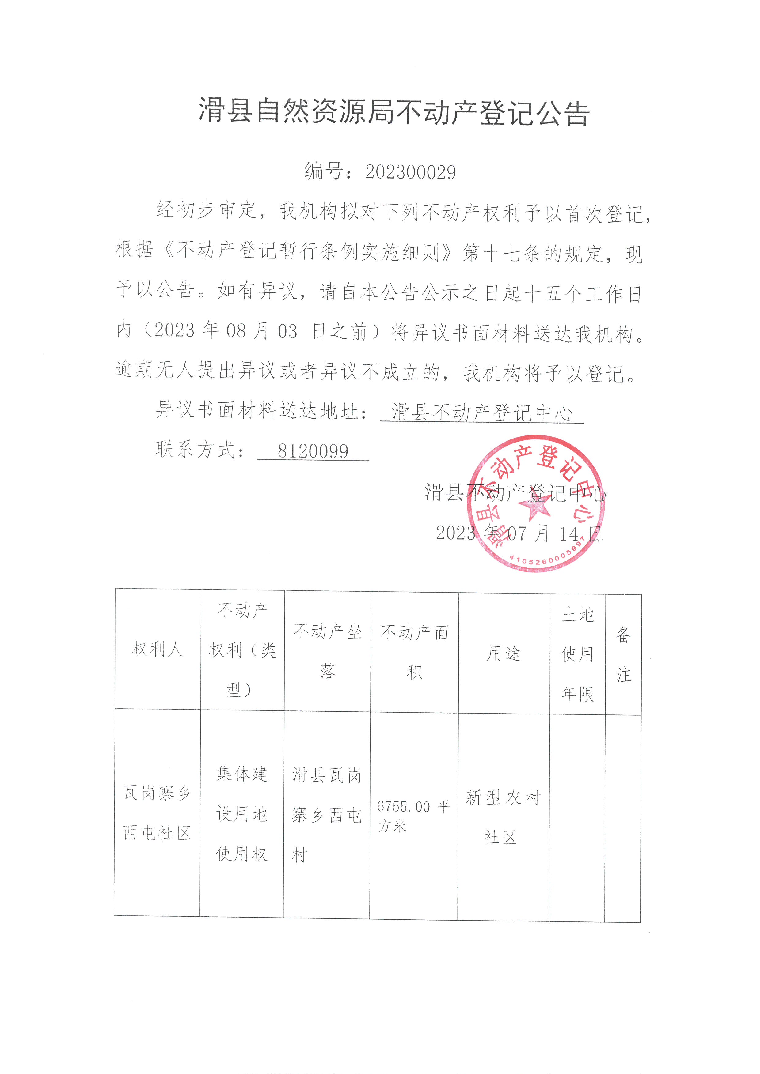 登记公告