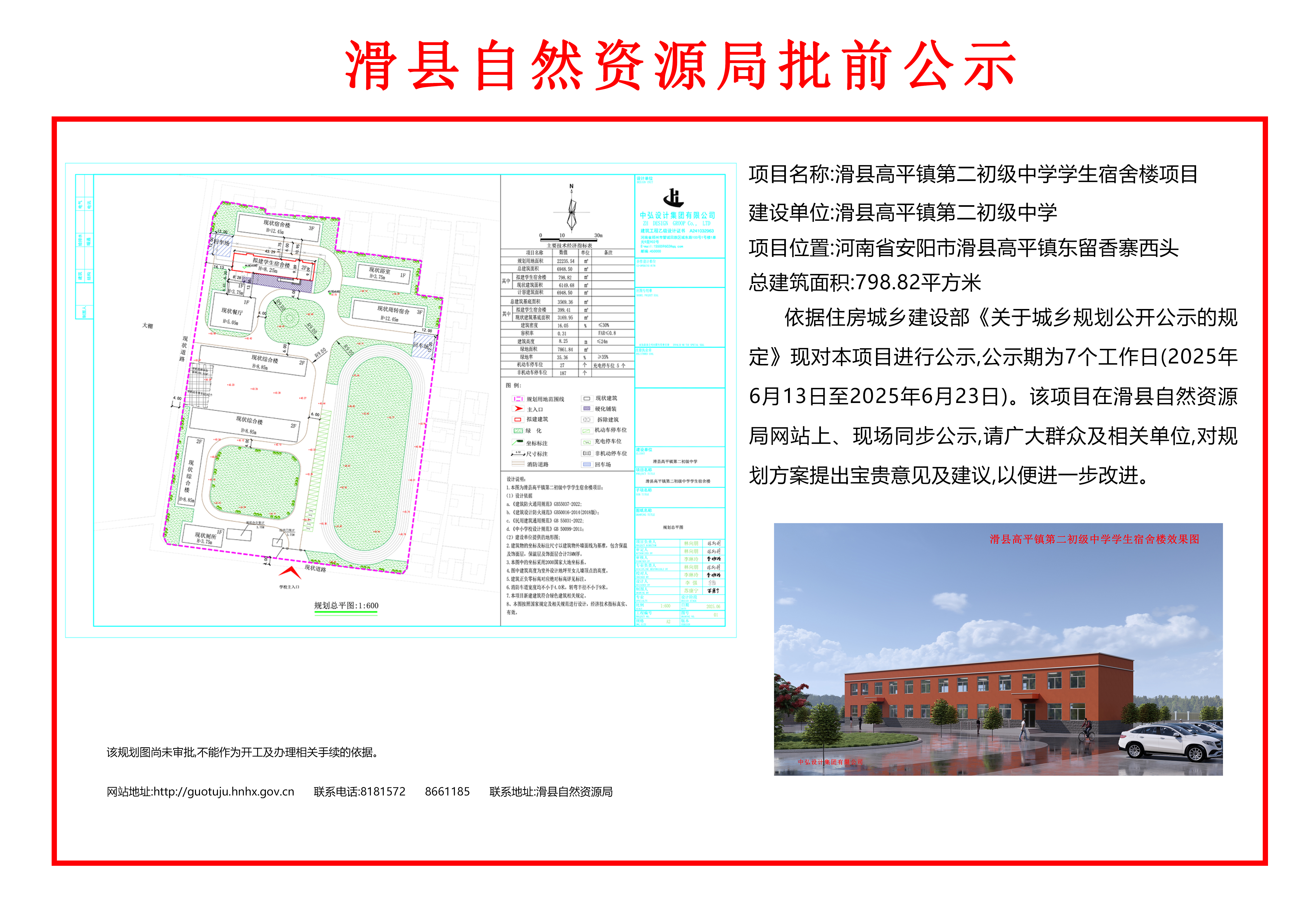 滑县高平镇第二初级中学学生宿舍楼项目批前公示