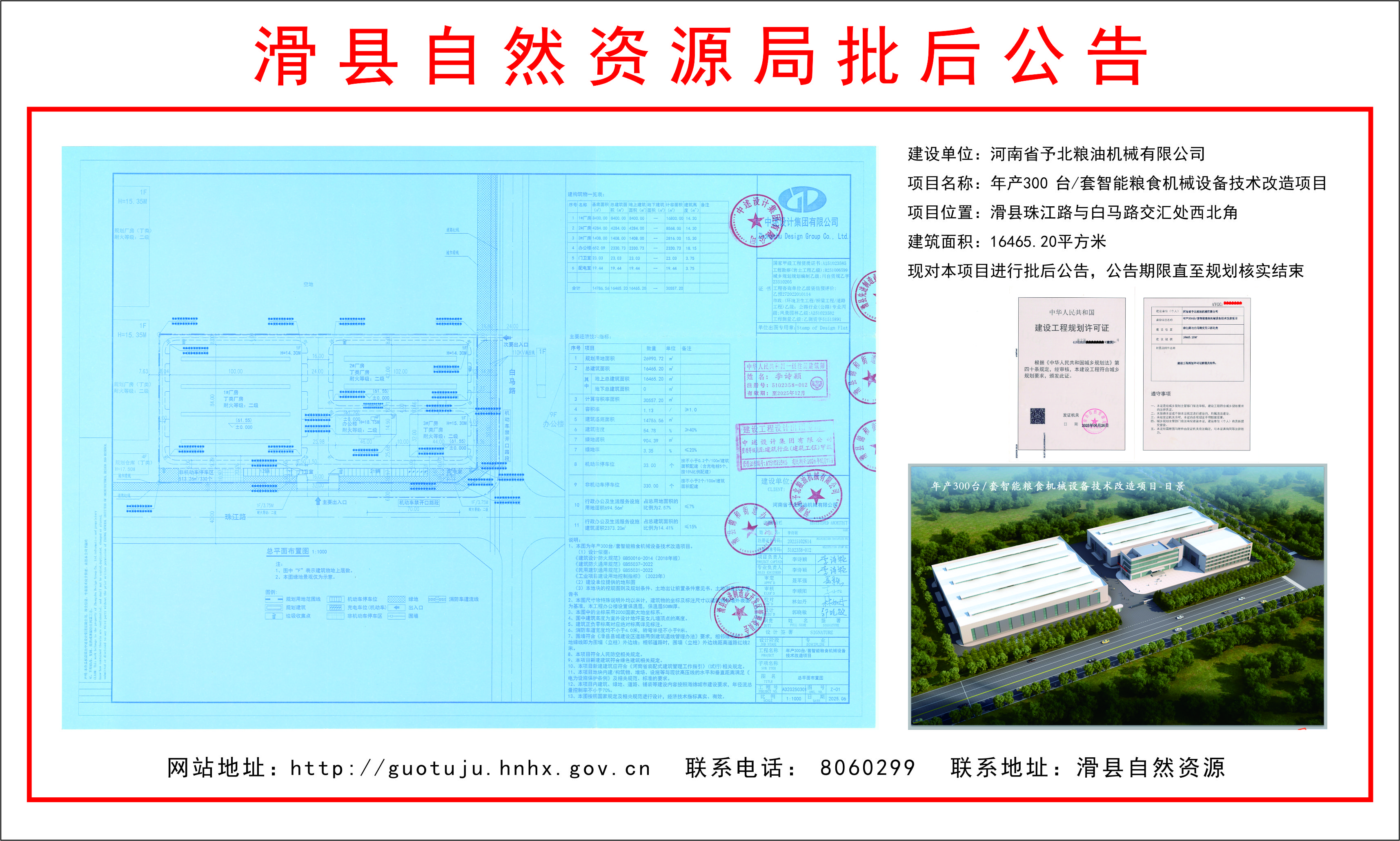 年产300台/套智能粮食机械设备技术改造项目批后公告