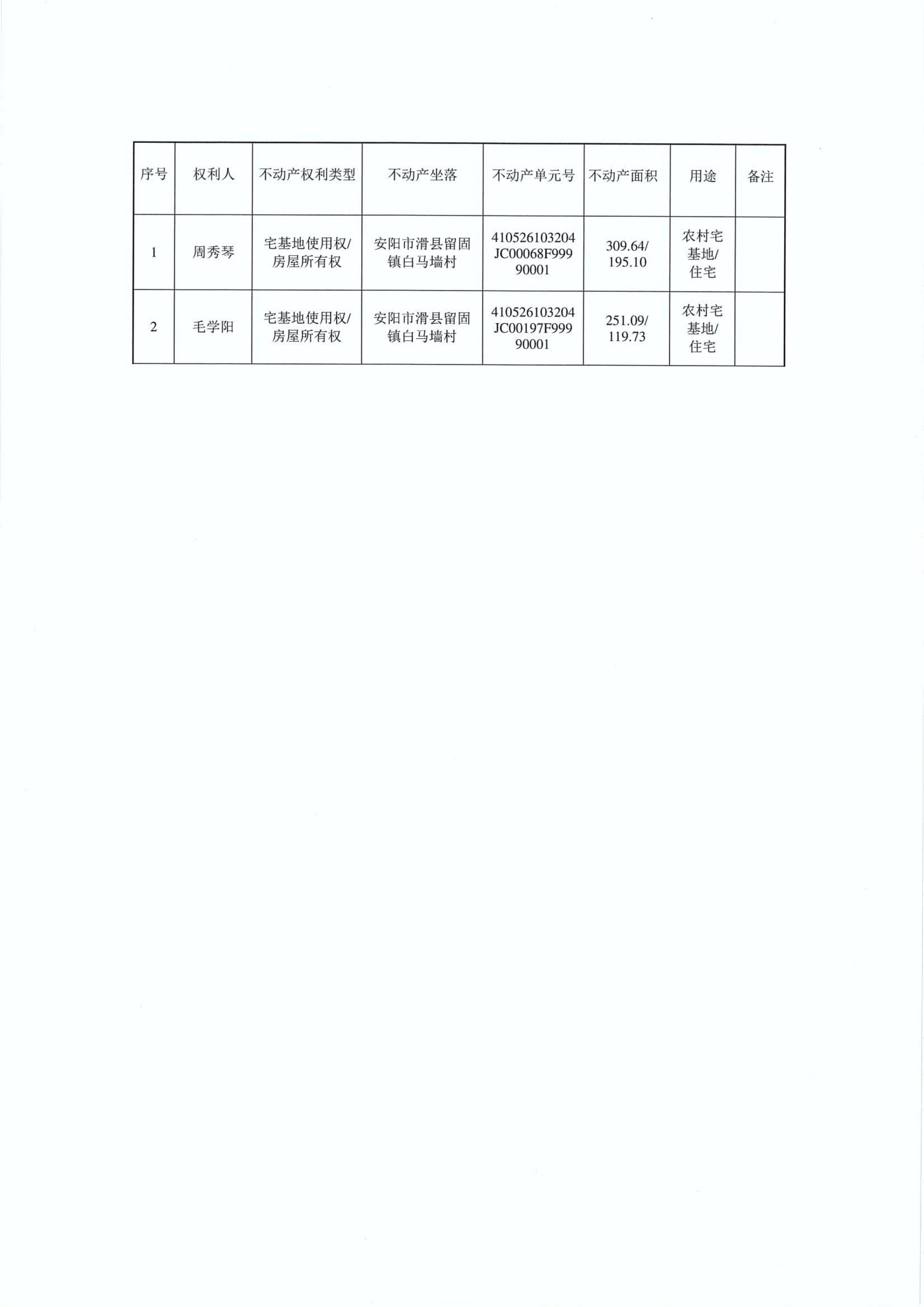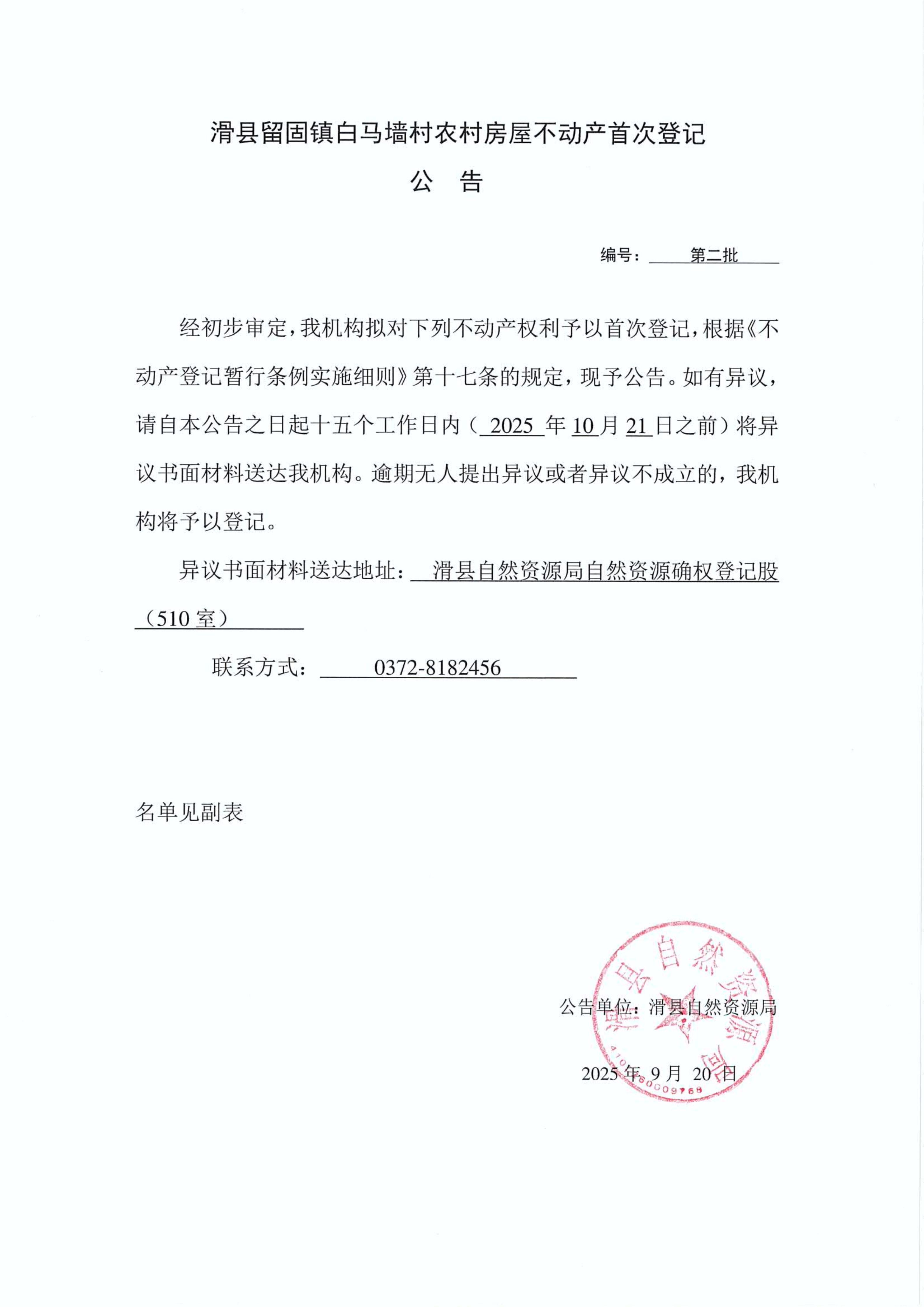 滑县留固镇白马墙村农村房屋不动产首次登记公告