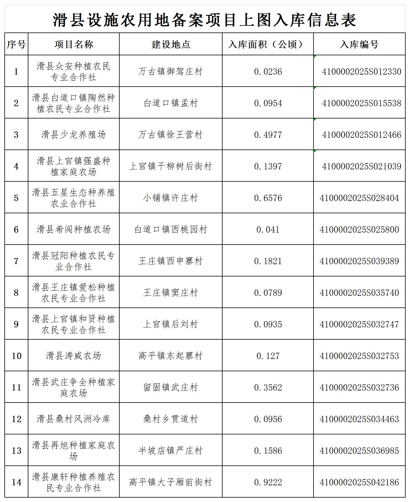 滑县设施农用地备案项目上图入库信息表