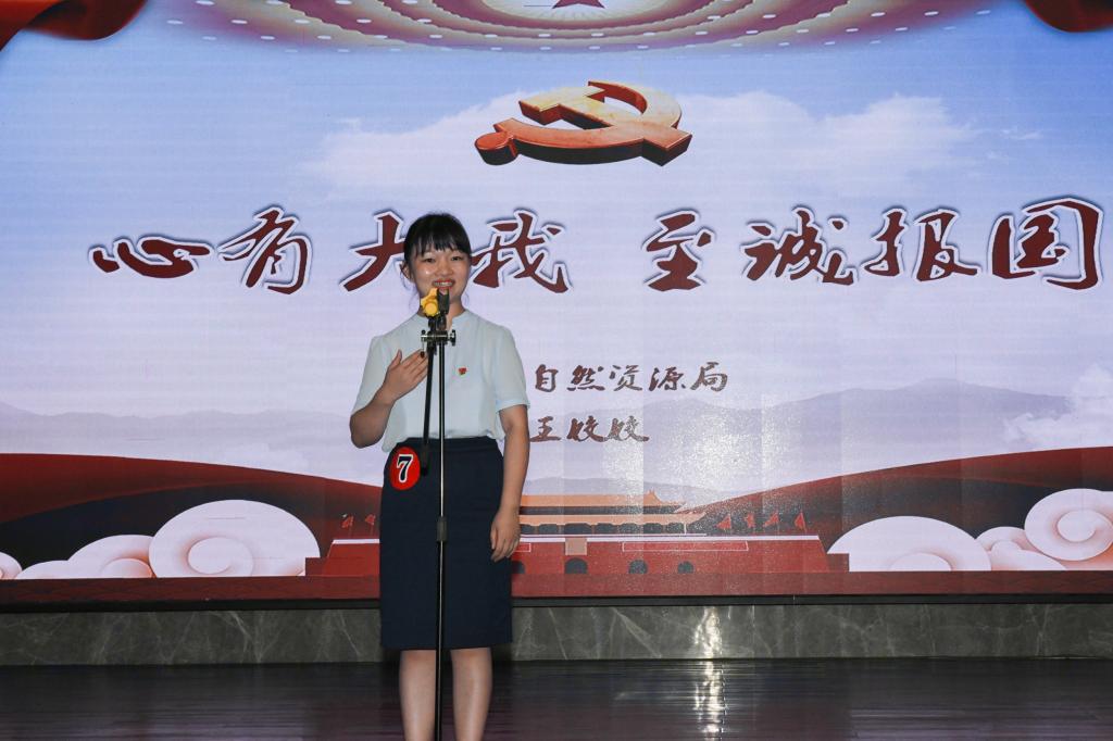 演讲中,王姣姣结合自身工作和生活实际,讲述了自己与祖国一起成长,投身自然资源事业参加祖国建设的热情,表达了对祖国的热爱,展现了“自然资源人”不负时代使命,在平凡岗位中恪尽职守为推动国家强大贡献力量的决心,精彩的演讲博得了在场观众的阵阵掌声。