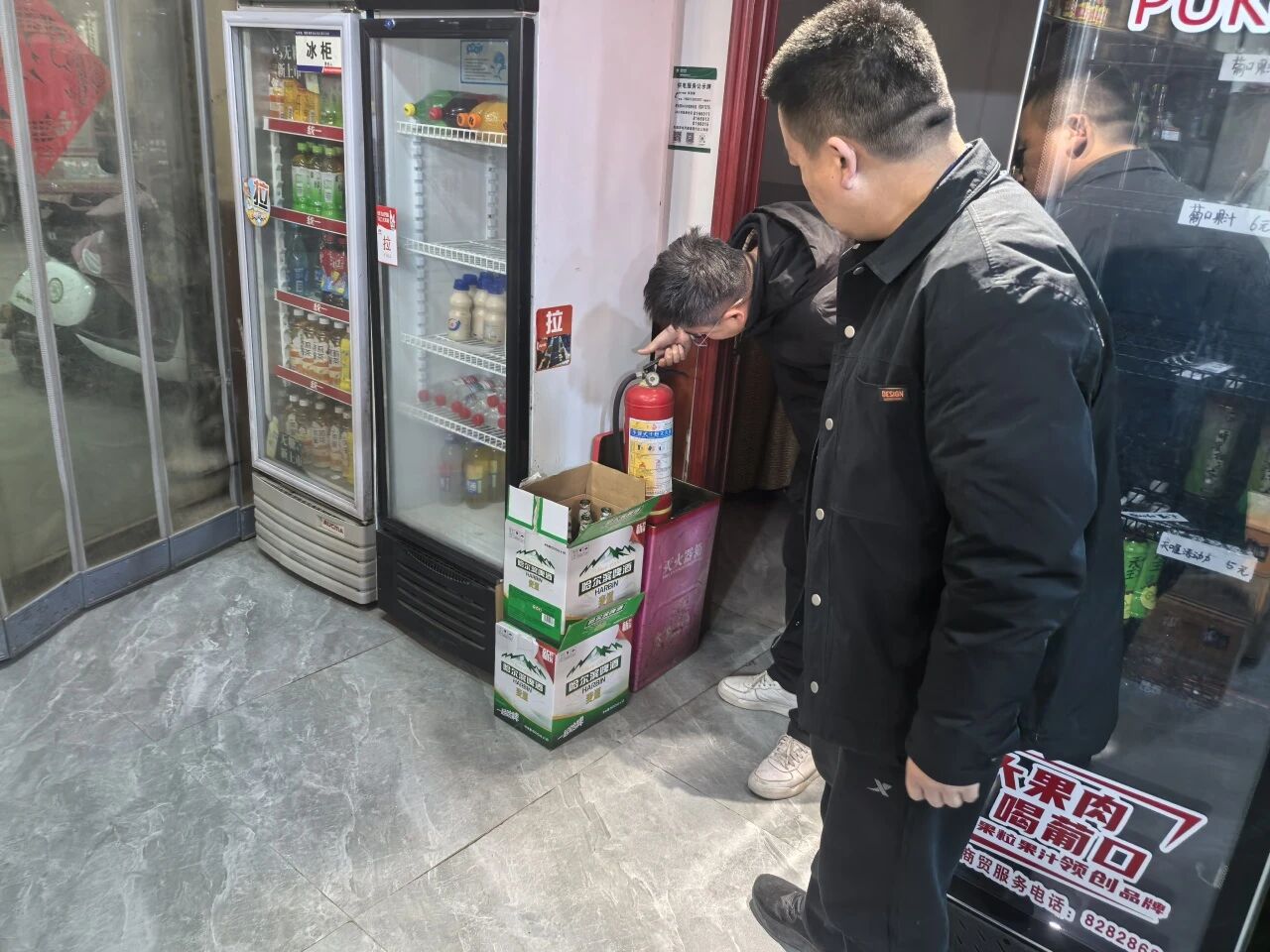 行动中,工作人员深入辖区内饭店、超市等经营场所,聚焦消防安全关键环节,细致排查消防设施配备是否齐全、灭火器是否在有效期内、疏散通道是否畅通无阻。同时,针对场所内电气线路铺设是否规范、有无私拉乱接电线、线路老化等问题进行全面排查,做到隐患排查不留死角、不留盲区。在排查过程中,工作人员秉持“边排查、边反馈、边指导”原则,对发现的安全隐患当场提出整改意见,明确整改要求,并以通俗易懂的方式向场所责任人普及消防安全知识。