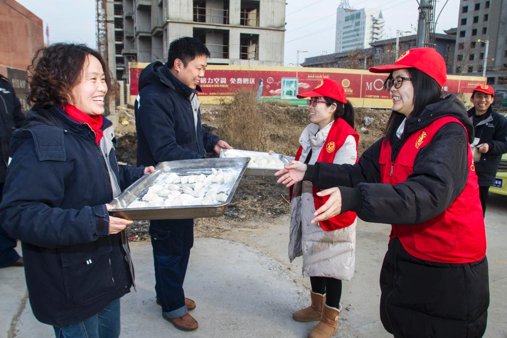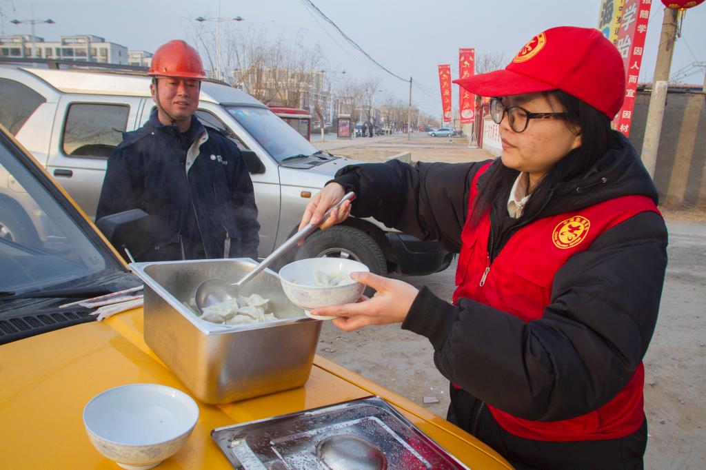 下午六点,“小红帽”们将个个白胖胖香喷喷的饺子送到了户外作业的工作人员手中,并将节日的祝福和“家”的温暖送到了他们的心中。