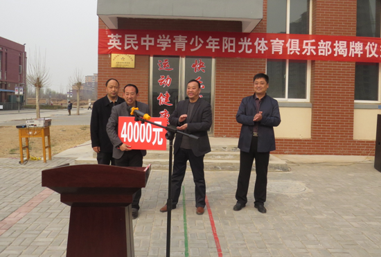 揭牌仪式结束后,教体局向英民中学青少年阳光体育俱乐部资助活动资金40000元。