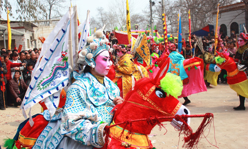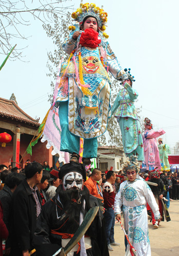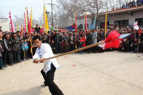 3月17日,在王庄镇邢行村火神圣会上,民间艺人进行精彩表演。当日,一年一度的王庄镇火神圣会热闹上演,吸引了滑县、浚县共13个村庄的艺人汇集展演。会上舞狮、背阁、秧歌、跑竹马、武术等民俗表演轮番登场,吸引了众多群众和游客驻足观赏,令人目不暇接、如痴如醉。该火神圣会兴起于清朝乾隆年间,距今已有300余年的历史,于每年农历二月初九举行,被誉为当地群众的“狂欢节”。
