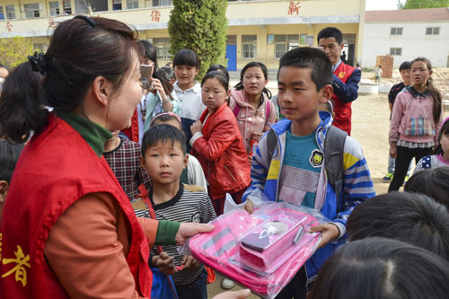 “有了这些书,我再也不用借同学们的了。”就读在高平镇第一中心小学的卜佳琪接到10余本的课外读物时高兴地说。前留寨村的杨中华腼腆的接过崭新的书包文具盒,流露出欣喜神情。