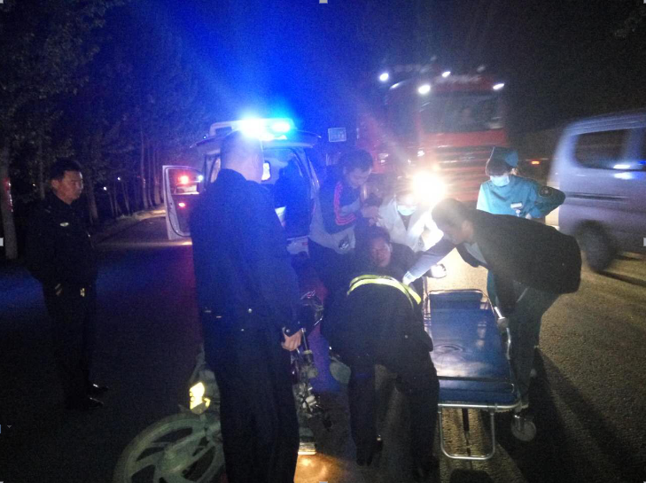 4月13日晚上9点10分,跟往常一样,县交通运输局执法所治超一中队队员正在超限站值夜班,有群众反映站东面发生一起车祸,肇事车辆逃逸,伤员躺在路上,情况危机!闻讯治超一中队队员和值班交警马上赶往现场,在站东300米路南发现伤者和所驾驶摩托车倒在路上,伤势严重。一中队队员杜新亮、吴海青和交警李新战马上在事故现场设置警示标志,指挥车辆绕行。其他人员在查看伤员情况的同时立即报警、报120并联系其家人。随后枣村派出所民警和120救护车赶到。治超一中队队员帮助医护人员把伤员抬到救护车上,并维护现场直到事故处理完毕,队员们这才放心地离开。