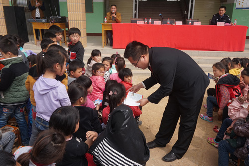 普法教育讲座结合大量鲜活的真实案例,以案说法、声情并茂,时不时地与学生们进行互动交流,得到了在场小学生们的积极响应。随后就小学生们应当了解的法律法规如《宪法》、《刑法》、《未成年人保护法》、《交通安全法》等进行了讲解,强调了学习宪法、法律的重要性,提醒大家一定要认真学习法律知识,学会用法律的手段保护自己,努力做一个学法、懂法、守法、爱法的好少年。最后,法官们向小学生送去了一份县人民法院精心制作的“青少年普法宣传册”。