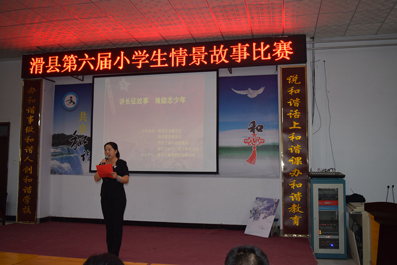 为纪念长征胜利80周年,在少年儿童中广泛开展社会主义核心价值观教育,弘扬爱国主义精神,激发广大少年儿童继承光荣革命传统、树立远大志向。5月27日上午,由县妇联、教体局、工商局、关工委联合举办的以“讲长征故事,做励志少年”为主题的第六届小学生情景故事比赛决赛,在产业集聚区锦和小学举行,来自全县的126名选手参加了比赛。
