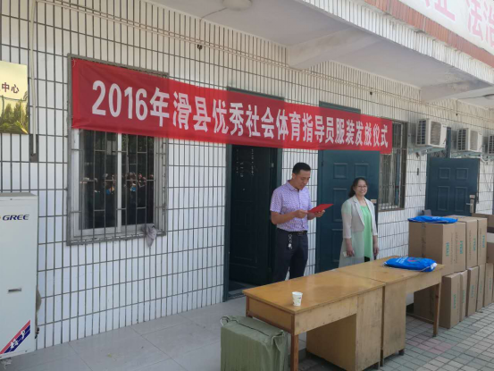 5月24日,教体局举行了2016年滑县优秀社会体育指导员服装发放仪式,对全县215名优秀社会体育指导员集中发放了服装。