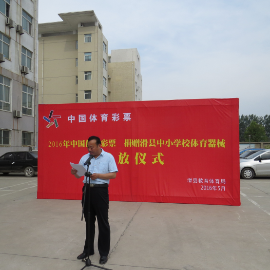 5月18日,2016年中国体育彩票捐赠滑县中小学校体育器械发放仪式在教体局顺利完成。