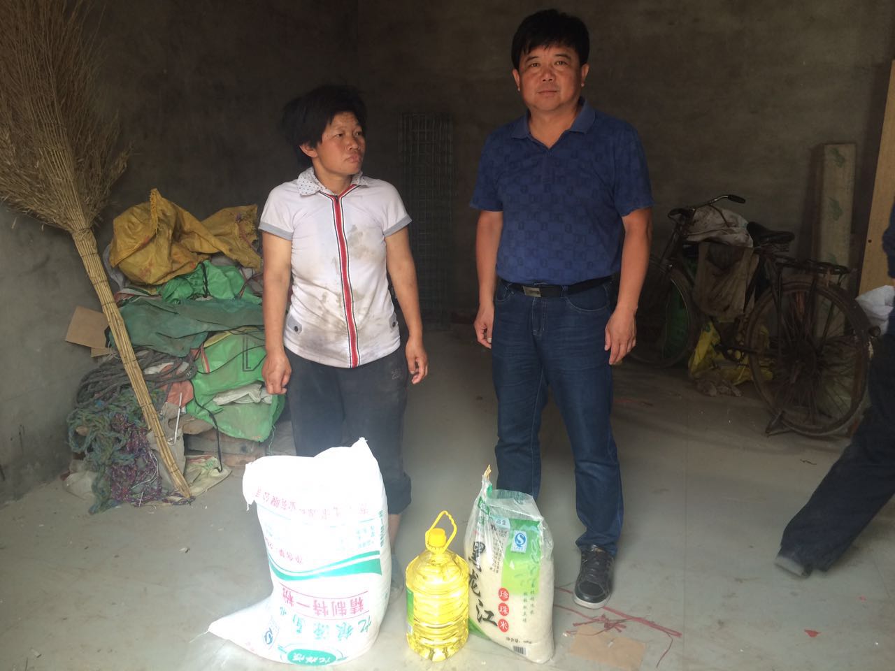帮包人为贫困户送去米、面、油等生活用品