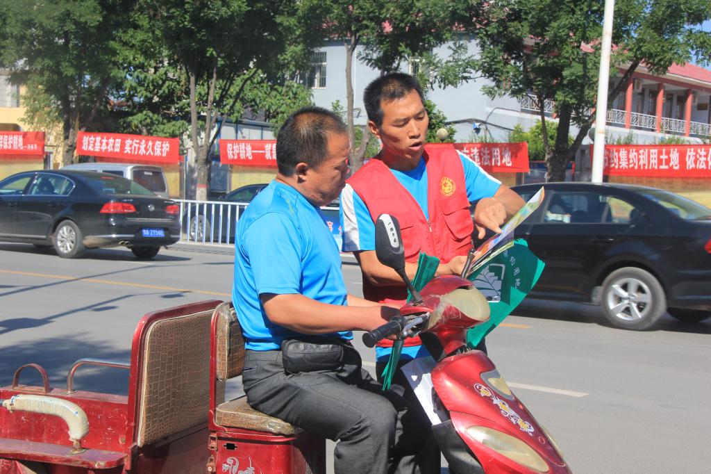 志愿者在繁华地带和社区设立咨询台,摆放宣传展板,发放宣传资料,向群众宣传我国土地资源国情、省情和县情,现场解答群众土地确权登记发证、宅基地申请、永久基本农田保护等问题,普及土地日相关知识,提升广大群众节约集约用地和保护耕地的意识,引导全社会形成土地资源保护、依法依规用地的良好氛围。