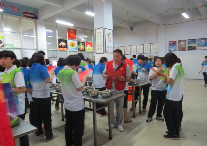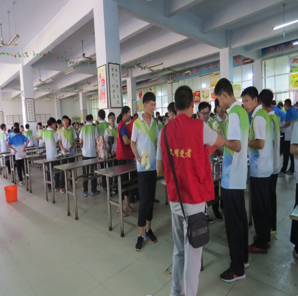 6月22日上午,县交通运输局组织志愿者来到县六中餐厅宣传文明餐桌知识,教育学生就餐时要文明排队、礼让他人,要本着“吃多少打多少、不挑食不浪费、不吵闹不喧哗”的原则,另外,还引导学生在日常学习和生活中要“节约一粒米一滴水一度电、节约一支笔一张纸”。