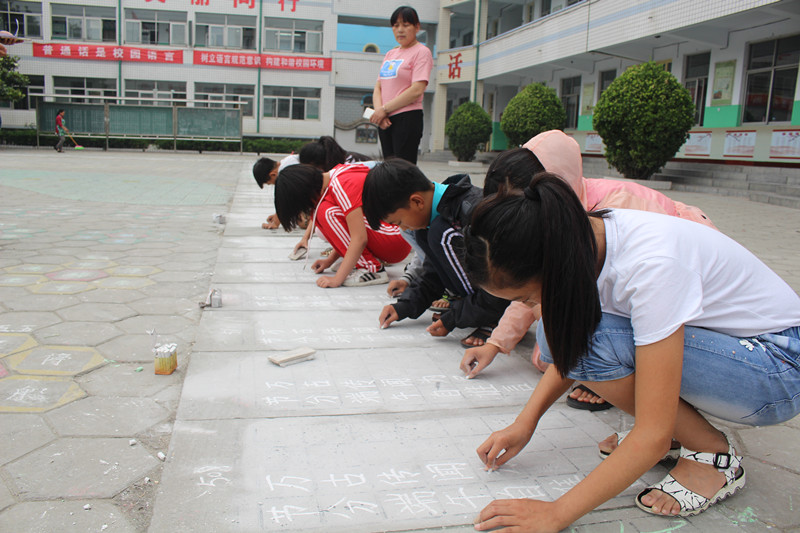 地书(在地面书写粉笔字)是向阳小学独特的风景线,端午节是富有中华民族特色的节日,两者完美的结合,既提高了学生的书写能力,又让学生感知了我国传统佳节的独特魅力,进而激发了他们的民族自豪感和爱国热情。