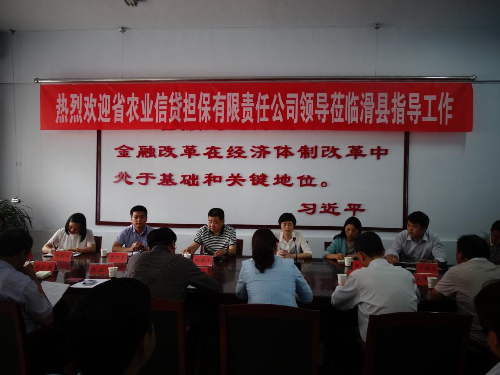 6月3日,河南省农业信贷担保有限责任公司副总经理赵向红一行莅临滑县调研指导工作,并就农业担保模式进行了座谈。县金融办、财政局、农业局等11家县直单位主要负责人参加会议,副县长张保平出席会议。
