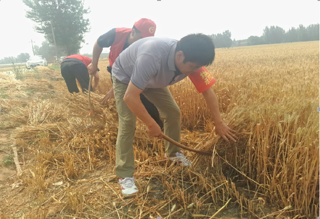 6月4日一大早,县运输局组织50余名志愿者,来到贫困村王庄镇耿庄、豆庄和龙村,赶在大雨来临之前,帮助贫困户抢收夏粮。