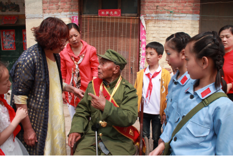 孩子们表达对昔日为建立新中国浴血奋战,换来今日和平安定幸福生活的革命老前辈的无限崇敬。