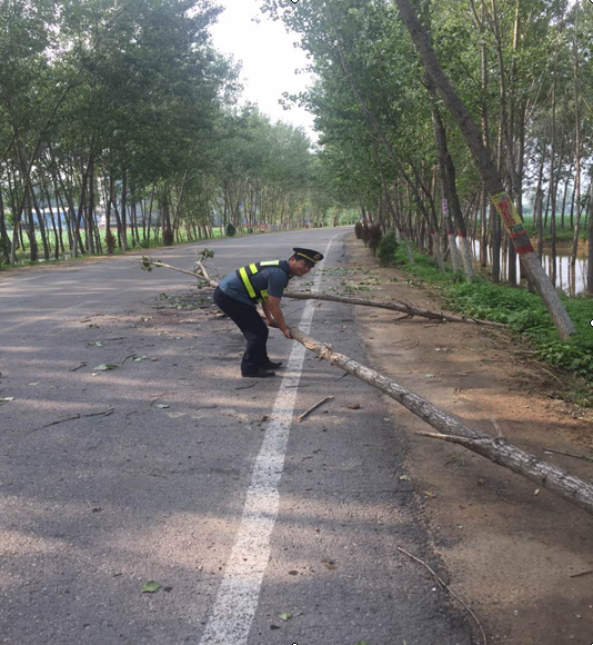 7月19日晚,滑县境内突降暴雨,导致农村公路沿线部分树木倒伏,路肩损毁严重,造成了极大地道路安全隐患。20日一大早,大雨刚过,滑县交通运输局就立即组织执法和养护工作人员,分兵数路深入所管辖的600余公里县乡公路进行抢险保通工作。据统计当天共对水毁路肩设置临时标志100余处,清除刮倒树木30余处,保障了全县农村公路的安全畅通。