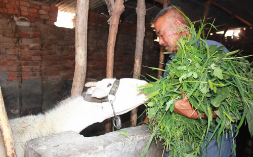 “党和政府让俺享受到了扶贫到户增收绵羊养殖项目,养一只羊补助500块钱,最多补助10只,能给俺补助5000块钱,这让俺尽快摆脱贫困的信心很足。”6月30日,正在给羊加料的伦金仙大爷激动地说。