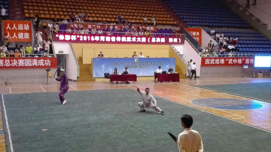 8月31日至9月3日,由河南省武术运动管理中心、河南省武术协会、郑州市体育局主办,郑州市武术运动管理中心、郑州市武术协会承办的“体彩杯”2016年河南省传统武术大赛(总决赛)在郑州市体育馆举行。来自全省省辖市、直管县武术协会、武术社团76支代表队的596名优秀选手进行了传统拳术、传统器械、对练、集体项目4个大项的比赛。