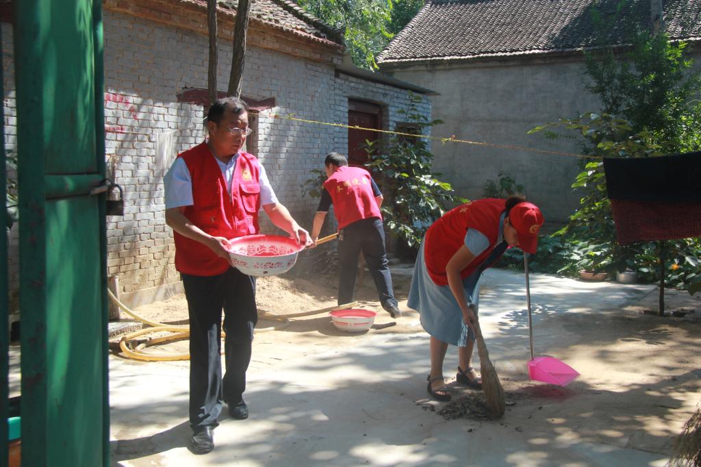 活动中,志愿者们兵分两路,带着扫帚、拖斗、铁锹等工具,深入贫困户家中开展清扫活动。除草洒水、清扫地面、修理门窗,志愿者们干得热火朝天,贫困户们乐开了花。在打扫卫生的过程中,志愿者们还积极的向贫困户宣传“清洁家园”活动的意义,引导村民逐步树立卫生意识,养成良好的卫生习惯。