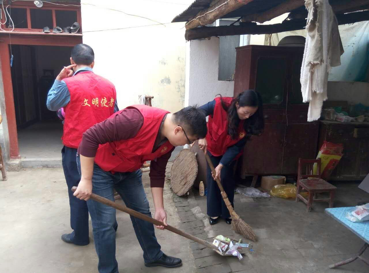 10月17日是中国第三个扶贫日,也是第24个国际消除贫困日,一大早,滑县交通运输局局长刘自敏、副局长王汉洁亲自组织带领30余名帮扶志愿者,带着扫把、铁锨、毛巾等工具来到王庄乡窦庄、耿庄和龙村窦福康、杨修仁等贫困户家中,帮助他们清理院落中的杂草、杂物,擦玻璃,收拾屋内卫生。