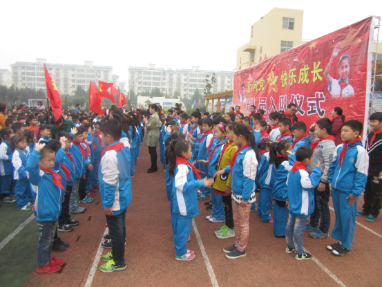 产业集聚区锦和小学举行“童心向党 快乐成长”建队日一年级新生入队活动