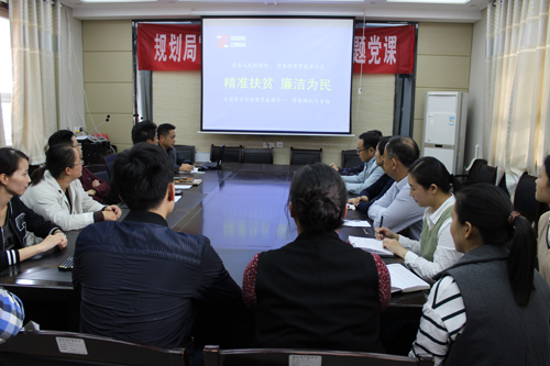 10月11日下午,规划局配合检察机关开展“精准扶贫、廉洁为民”专题警示教育活动 ,紧密结合“两学一做”学习教育,通过组织全体干部职工集中观看精准扶贫警示教育片,从正面和反面分别讲述了大家身边鲜活的先进事迹和腐败案例,让全体干部职工受到了强烈的心灵震撼,大家纷纷表示将以精准扶贫、阳光扶贫、廉洁扶贫为目标,与帮扶乡政府、村委加强协作配合,凝聚工作合力,全力以赴打赢这场脱贫攻坚战。