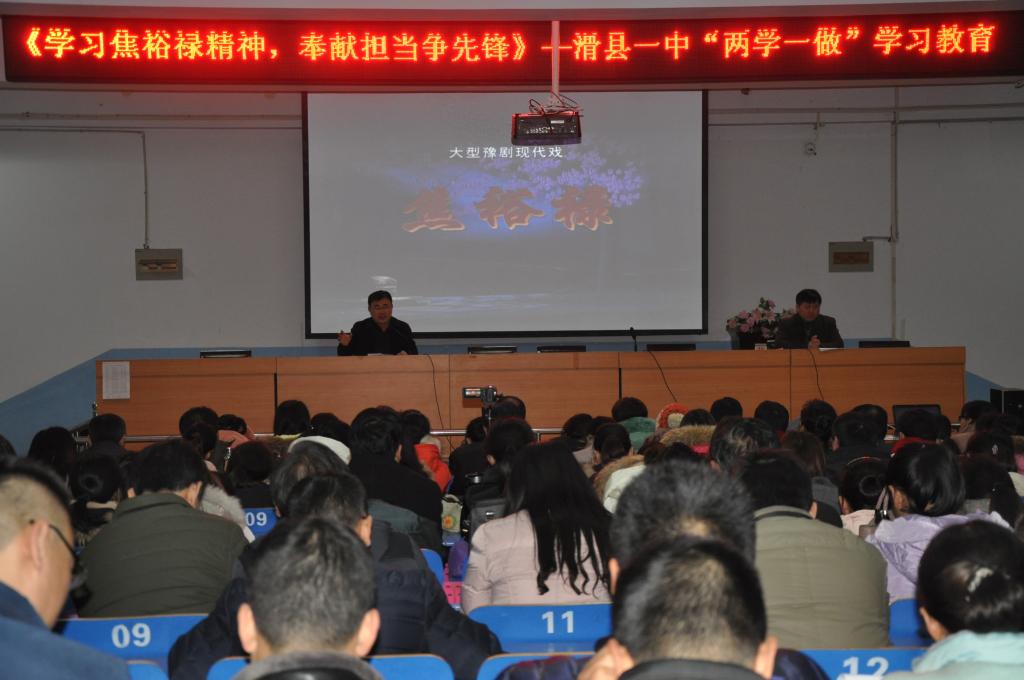 为深入推进“两学一做”学习教育,充分发挥优秀共产党员的示范引领作用,弘扬奉献担当精神。11月29日下午,滑县一中在学校多功能报告厅举行了“学习焦裕禄精神 奉献担当争先锋”教育活动,集体观看了大型豫剧现代戏《焦裕禄》。