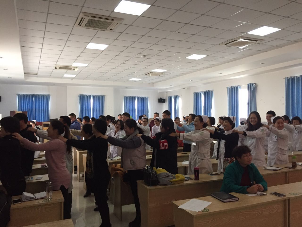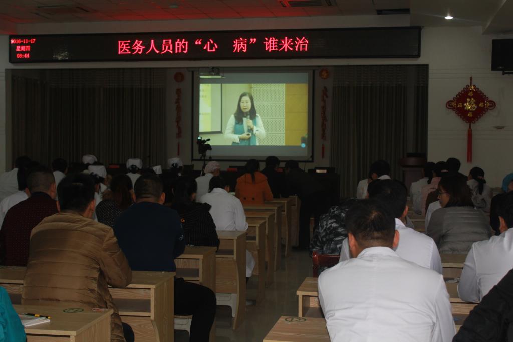 此次培训由清华大学应用心理学于焕新教授主讲,于教授通过全天6个多小时的演讲,给全院医务工作者带来全新的理念,不但让大家懂得了“挫折等于存折”、“瀑布是江河走投无路时创造的奇迹”、“一切都是最好的”的道理,还让大家做四给之人,即给人信心、给人希望、给人理解、给人方便。