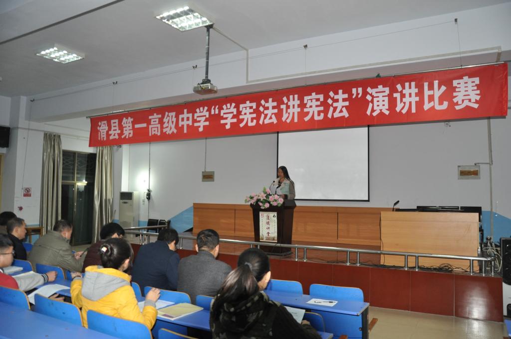11月1日晚,滑县一中“学宪法讲宪法”演讲比赛举行。本次比赛以弘扬宪法精神为宗旨,以宣传宪法基本原则和基本知识为重点,进行了一堂以学生为主题的校园普法教育宣传活动。