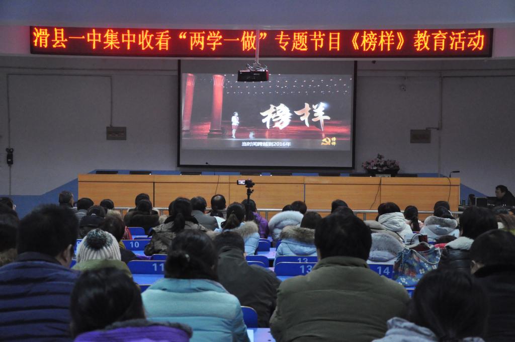 为进一步推进“两学一做”学习教育的深入展开,12月20日下午,滑县一中党委组织全体党员干部集中观看了专题教育节目《榜样》。