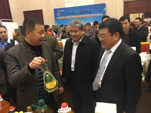 12月12日,县政府副县长张保平带领我县画保刚烧鸡、中国安绣、秦三杰绢艺、众发食品等8家企业参加为期三天的“天下粮仓 丰收河南”中国建行善融商务服务直管助力扶贫对接会。会议期间省直管办工委副书记、副主任史焕立,建设银行河南分行党委书记、行长李尚荣,副行长黄兴宏分别莅临我县展区参观指导,并对我县组织参展工作和参展产品提出了高度评价。