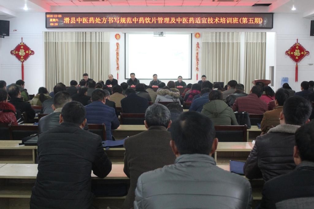 为了规范中药饮片处方书写,加强中药饮片管理,推广中医药适宜技术,由滑县卫计委中医科主办、滑县中医院承办了此次培训,培训班为期5天,每天一期,来自滑县综合医院、民营医院、22个乡镇卫生院、门诊部、村卫生室(诊所)的中医类或中西医结合类执业(助理)医师、乡村医生等727人参加了培训。培训内容主要包括:中药处方的书写规范、中药饮片的药性及管理和中医药适宜技术在肛肠病中的应用、临床常见精神心理疾病的中西医结合治疗、腰椎间盘突出的诊断治疗、中医药适宜技术在健康管理中的应用等中医药实用技术。