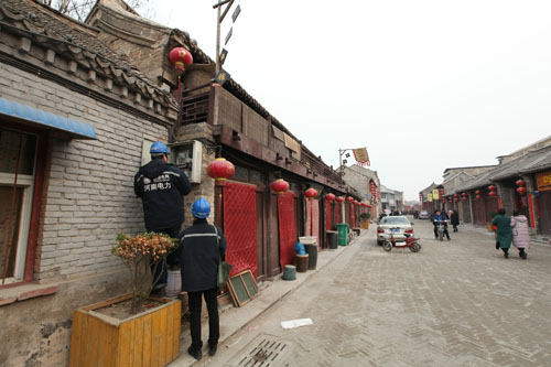 1月29日,大年初二,滑县道口古镇的街道上,电力员工正在巡视电力设备,力保群众亮堂过节。大年初二,按照当地习俗,本该是陪着爱人回娘家的一天,为了让全县人民亮堂过节,滑县供电公司员工默默坚守在工作岗位上,尽职尽责履行着自己的使命。寒风凛冽中,电力员工仍然奋战在春节保电一线,巡视电力设备,全力保障广大群众安全可靠用电。