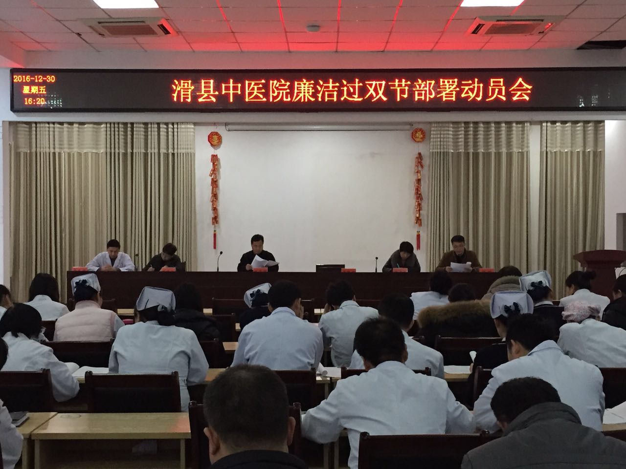 根据县纪委安排,12月30日下午,滑县中医院开展廉洁过双节部署动员会,院领导张富国、杜文飞、许卫红、乔天德、刘权等参加了动员会。