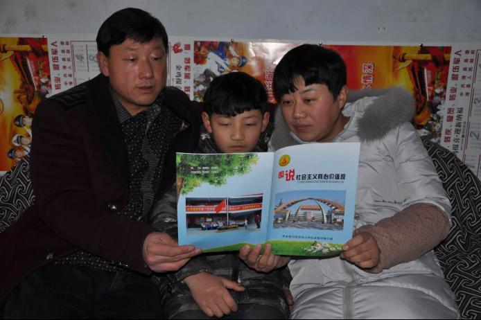 道口镇实验小学组织开展了“社会主义核心价值观教育进家庭”活动,寒假期间,学生和家长一起学习校本教材《图说社会主义核心价值观》、《社会主义核心价值观记心中》,共同制定《践行价值观家庭公约》,相互监督,逐条落实,培育核心价值观,对提高家庭思想道德素质和文明素养,起到了很好的作用。