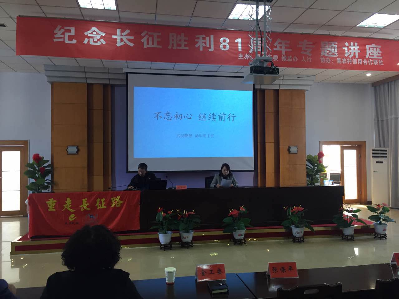 追溯红色长征记忆,传承红军革命精神。3月27日上午,为纪念中国工农红军长征胜利81周年,我县邀请武汉晚报首席记者汤华明,在联社八楼大会议室举办了“‘不忘初心,继续前行’——纪念长征胜利81周年”专题讲座。县政府副县长张保平、金工委书记李莉、银监办主任杨亚强、人行行长李超、各银行及保险公司职工代表共计150余人聆听了专家的讲座。