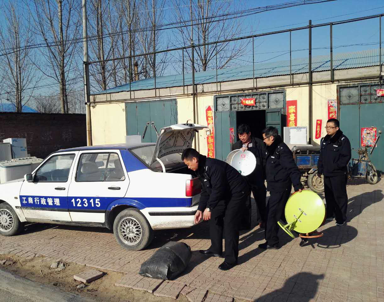 3月1日,县工商、广电等部门联合执法,在小铺乡李胡寨村查处了一起非法销售卫星广播电视地面接收设施行为。
