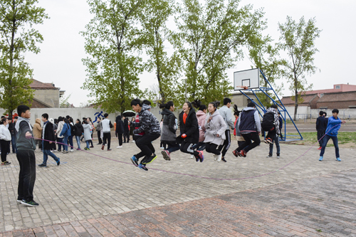 为丰富校园体育文化生活,4月16日,县一中全校3000名学生进行了跳绳比赛。活动分为跳长绳接力赛(集体项目),单人跳绳(个人项目),场地设在操场和各年级教室前空地上。比赛提高了班级凝聚力,激发了同学们锻炼身体的热情,展现了县一中青年学生积极向上,拼搏进取的风采。多年来,该校每天坚持利用课间,组织学生开展丰富多样的踢毽、打羽毛球、丢沙包等体育健身活动,提高学生身体素质。