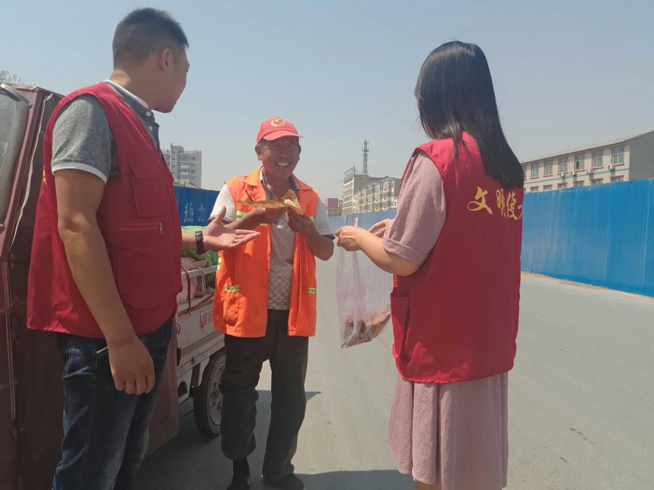 随后,志愿者们将煮好的粽子送到了环卫工人手中,给他们送去了节日的祝福和问候。
