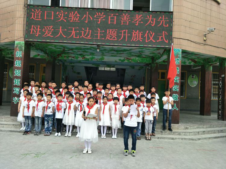 为弘扬中华传统美德,让学生懂得感恩,从小形成孝敬父母的良好品德,做一个心存感恩的人,道口镇实验小学举行“百善孝为先 母爱大无边”主题升旗仪式。